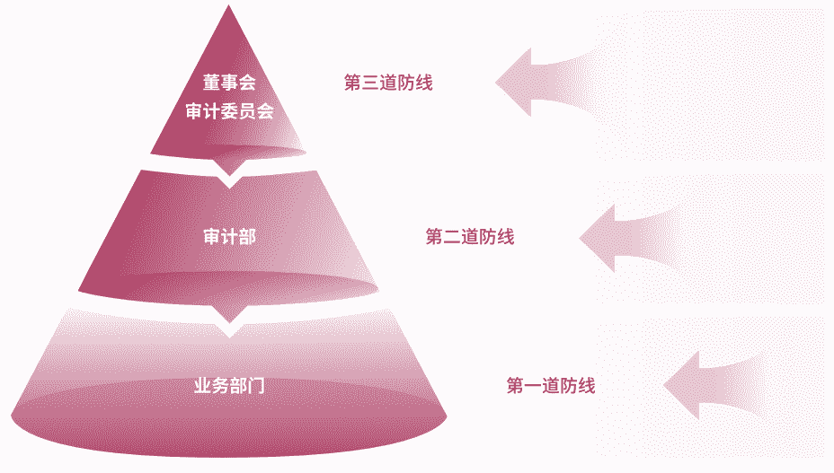 为有效防范贿赂与贪污等商业道德风险,,公司建立了由“董事会审计委员会、、、、审计部、、、、业务部门”组成的三道防线,,,全面落实公司商业道德合规工作,,并确保《商业道德行为准则》的有效执行。。。。公司审计部在董事会审计委员会的指导下定期评估、、、、审查公司的合规运营情况及准则的履行情况,,,,并对公司及所有子公司开展商业道德行为审计。。公司保证商业道德行为准则审计工作每三年覆盖公司及其所有控股子公司的全部业务范围。。。。