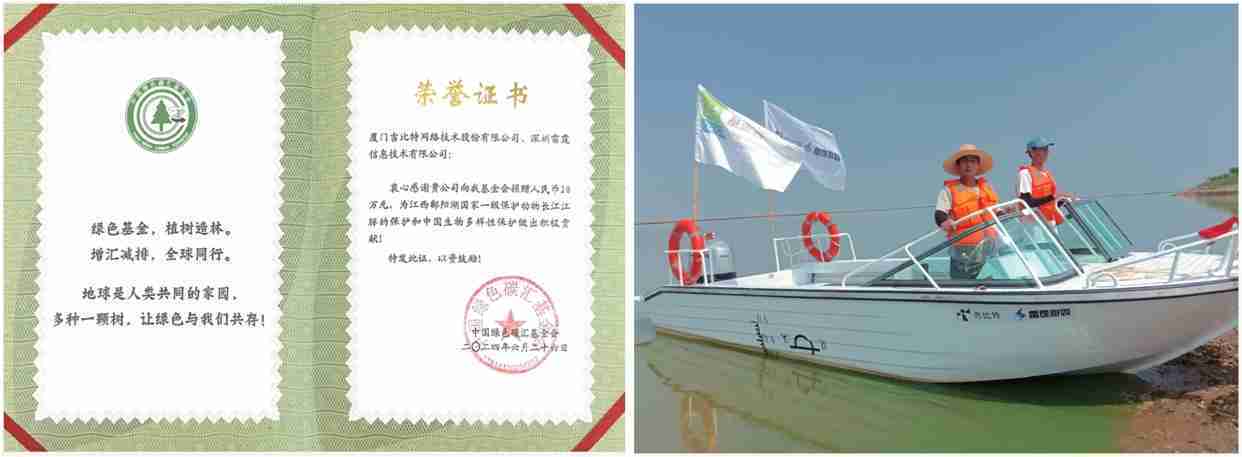 2024年6月,,,,公司携手中国绿色碳汇基金会,,,,开展“保卫江豚”公益活动,,,向基金会捐赠人民币20万元用于采购全新巡逻艇,,,,以支持鄱阳湖长江江豚保护工作。。。。截至2024年底,,,,公司捐赠的资金与巡逻艇已经有效协助巡护队对鄱阳湖1,667头江豚开展保护行动。。